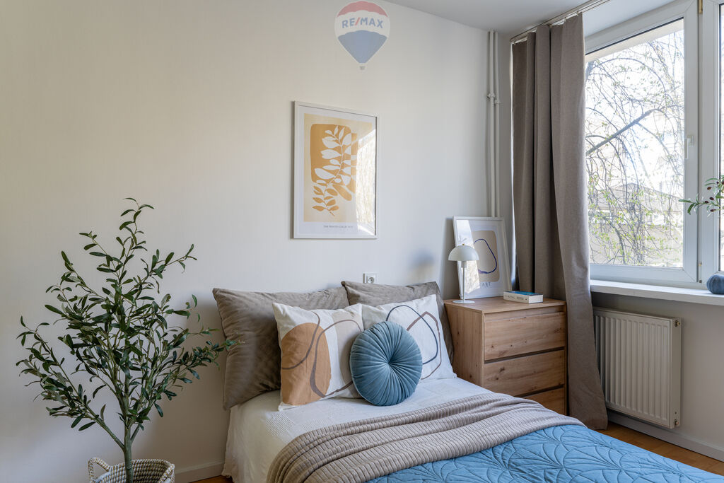południowej, z widokiem na zieleń i spokojną ulicę, sypialnia i