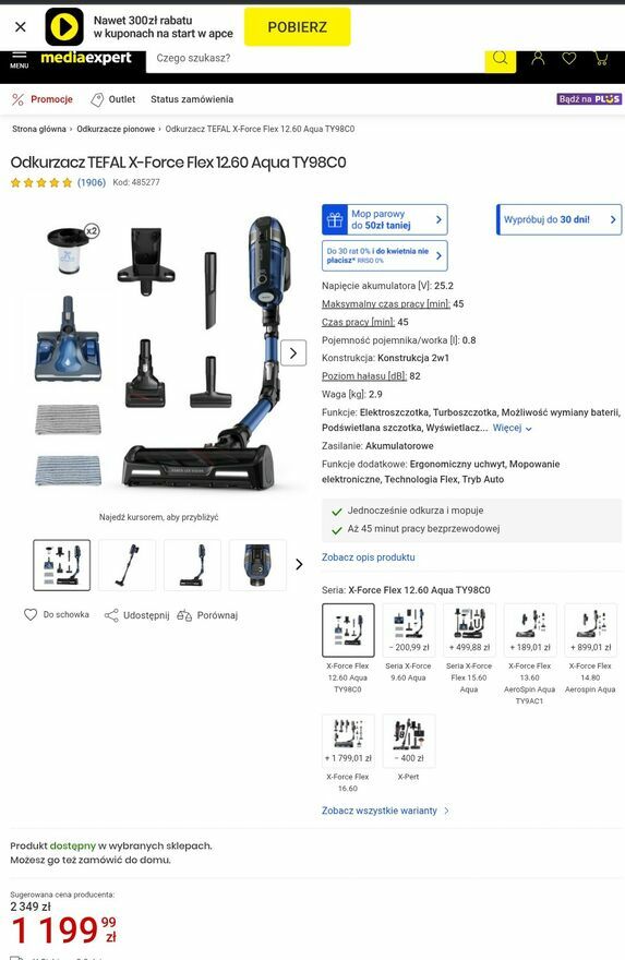 Marka TEFAL, model FLEX 12.60 (X FORCE, AQUA!)