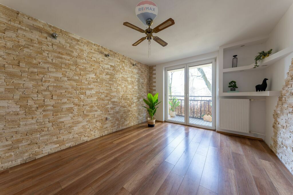 wysokiej klasy panele, na ścianach gładzie, dekoracyjne cegiełki,