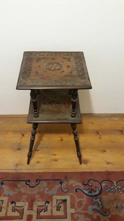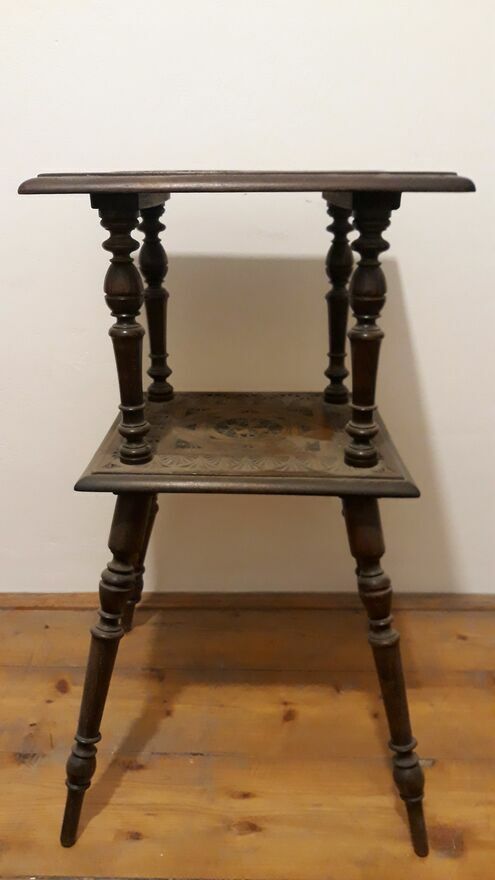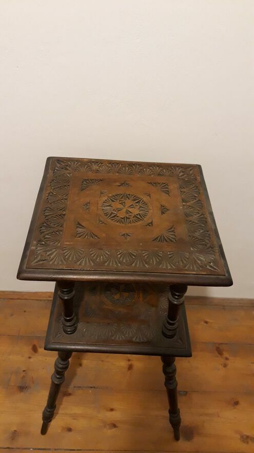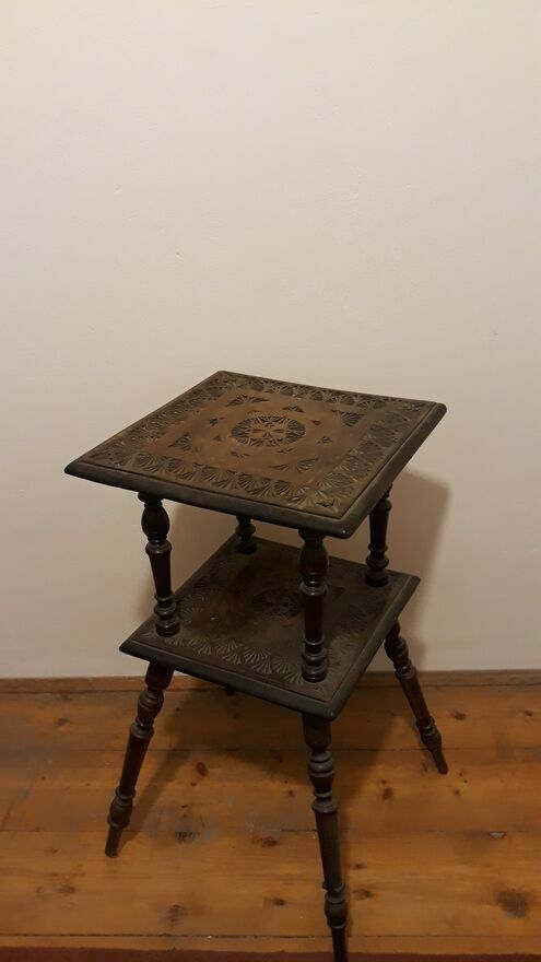 Rzeźbiony, drewniany stolik pomocniczy, kawowy, bogato toczonymi nogami i ozdobnym blatem.- DO ROZSĄDNEJ NEGOCJACJI