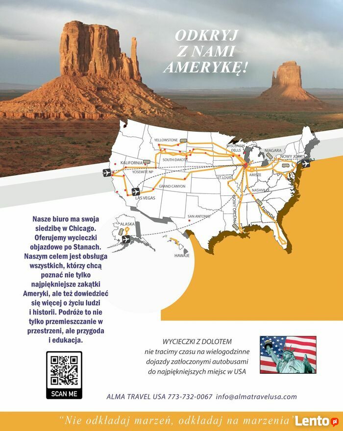 Zapraszamy do Stanów Zjednoczonych. Odkryj z nami Amerykę! Zapraszamy też do współpracy w organizowaniu wycieczek z Polski osoby prywatne i biura podróży!Sprawdź zainteresowanie tym ogłoszeniem