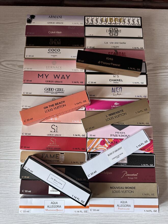 Przedmiotem ogłoszenia są perfumetki o pojemności 33ml najwyższej jakości. Produkowane są na bazie olejków dzięki czemu zapach utrzymuje się dłużej. Pełną ofertę modeli perfum przesyłam na podany adres mailowy. Piękne estetyczne wykonanie charakteryzuje się korkiem z grawerem i kolorowym płynem. Dzięki małej pojemności perfumy możesz ją zawsze mieć przy sobie i cieszyć się zapachem swojej ulubionej perfumy.Wysyłka Polska, Europa