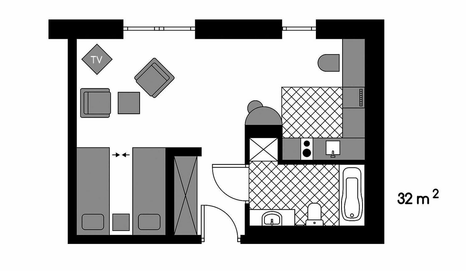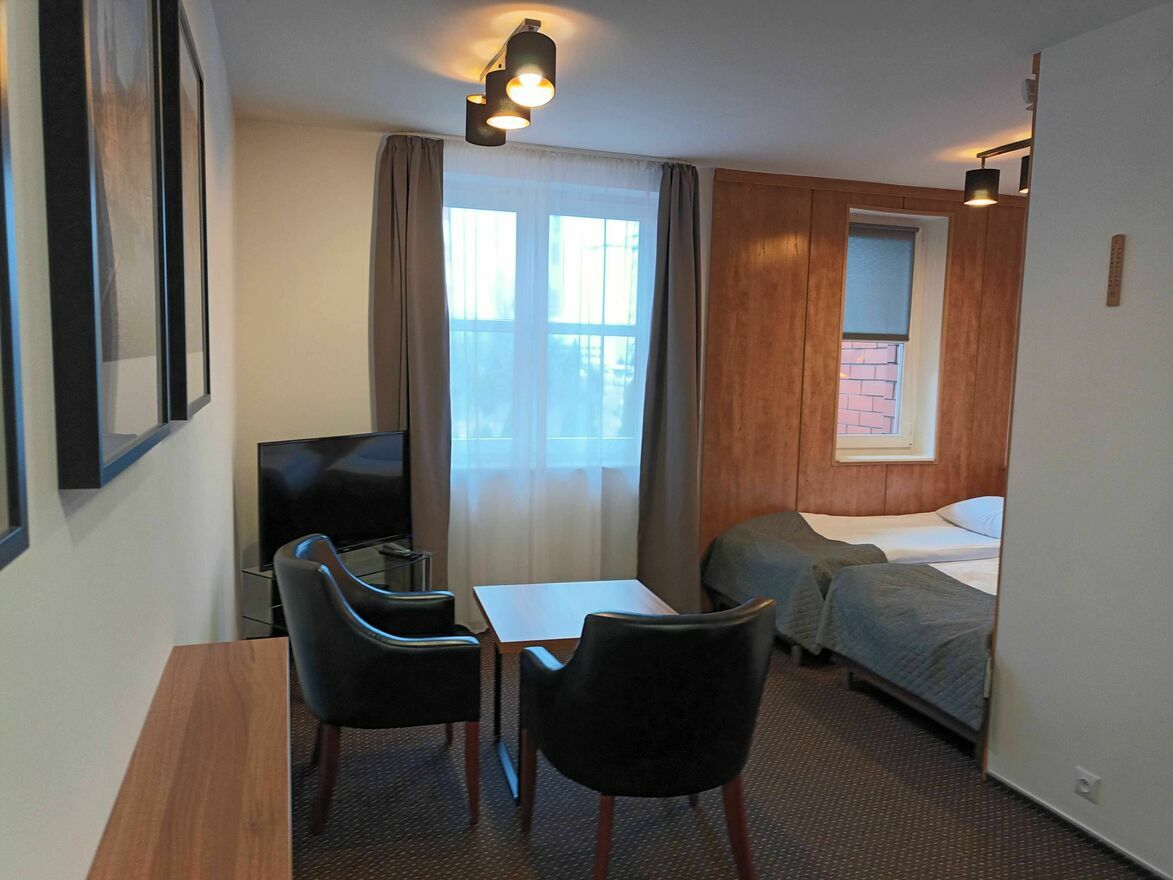 • pokój dzienny – fotele, stolik kawowy, biurko, TV LCD;