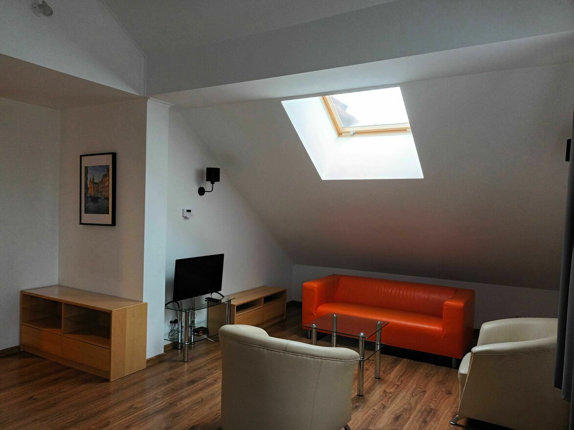 • pokój dzienny – fotele, sofa, stolik kawowy, TV LCD;