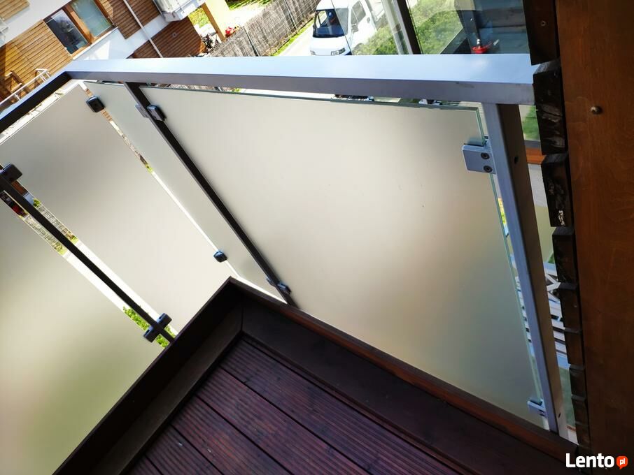 W czasach gdy wielu developerów montuje w balustradach balkonowych przezroczyste szyby, my wychodzimy na przeciw temu rozwiązaniu proponując montaż folii mrożonej na szybach balkonowych, który zagwarantuje intymność i swobodę na własnym balkonie i tarasie:- Do realizacji używamy folii mrożonej, która rozprasza światło, tzn. zapewnia intymność, nie zabierając światła dziennego.