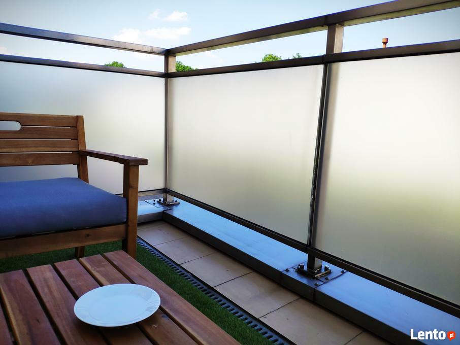 Oklejanie szyb balkonowych / tarasowych. Folia mrożona WAWA
