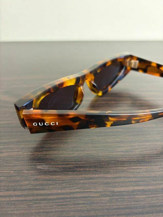 Cześć,Sprzedam w pełni oryginalne okulary przeciwsłoneczne Gucci GG1779S 004 w kolorze brązowo czarnym. Jest to bardzo designerski model.
