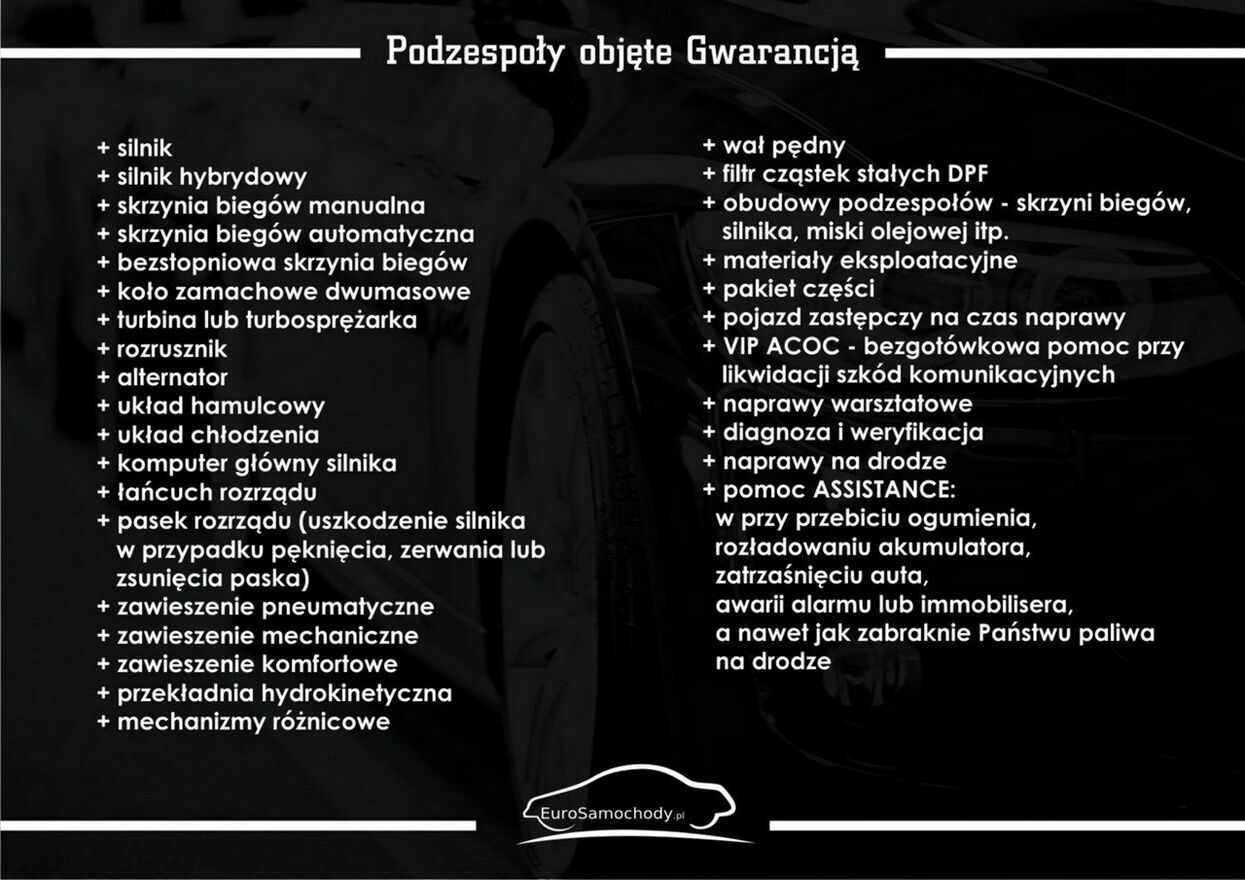 - GWARANCJĘ TECHNICZNĄ (Możliwość przedłużenia do 36 m-cy w której do wykorzystania jest kwota 15000zł na naprawy, realizowaną w całym kraju.)