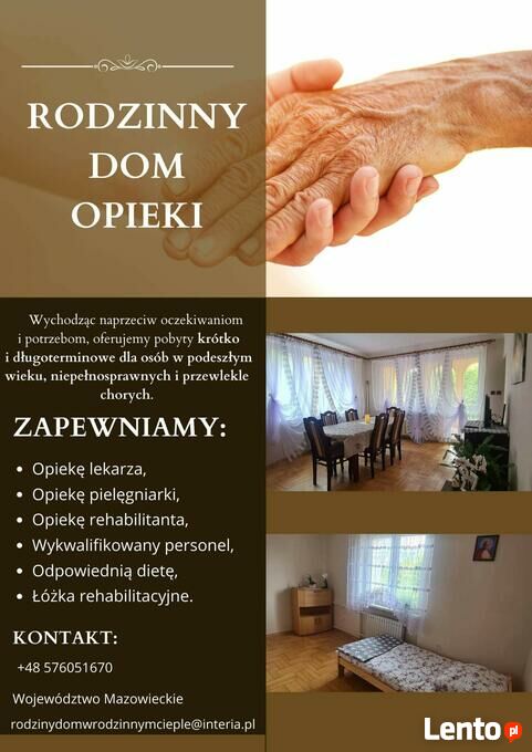 To profesjonalny rodzinny dom opieki, zapewniający opiekę całodobową, pobyty dzienne oraz weekendowe.