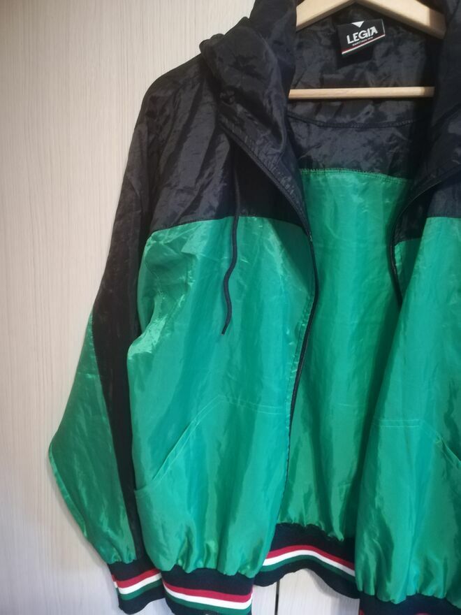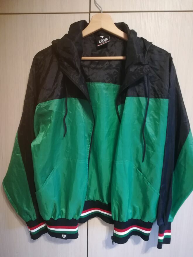 Ortalion Legia Warszawa, rozmiar S używany w kolorze zielonym. Idealny wybór dla fanów drużyny Legia Warszawa. Założony razGrzegorz