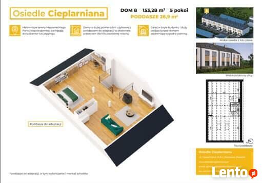Segment 126,38 m2 powierzchni użytkowej + 26,9 m2 poddasza do zagospodarowania