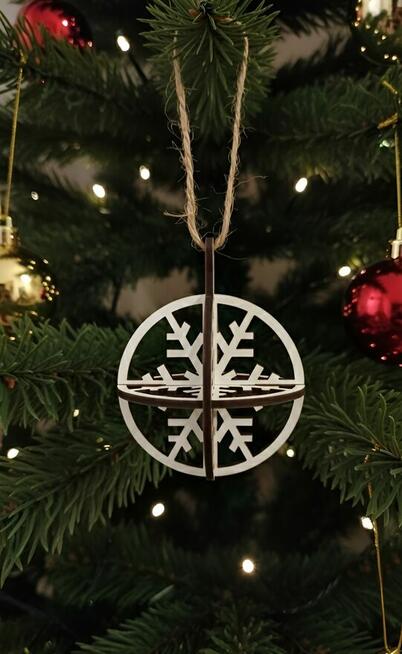 Drewniana Ażurowa Bombka 3D - Śnieżka, Śnieżynka