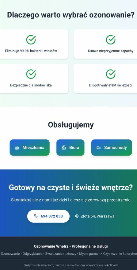 Najczęściej stosowanymi do tego celu są ozonatory przedmuchowe czyli wytwarzające ozon z tlenu zawartego w powietrzu. Ozonowanie usuwa pleśnie, grzyby, roztocza. Usługa wykonywana jest na terenie Warszawy i okolic. Osoby zainteresowane proszę o kontakt telefoniczny 694 - pokaż numer telefonu -