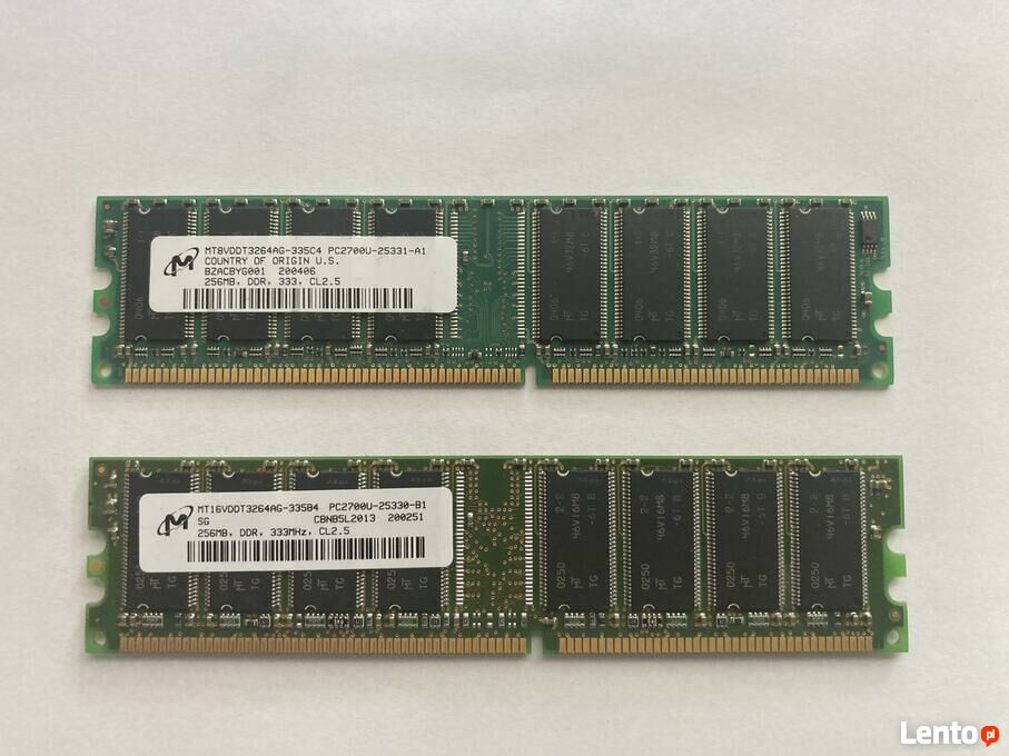 Pamięć RAM 2x Micron 256 MB DDR PC2700 333 MHz