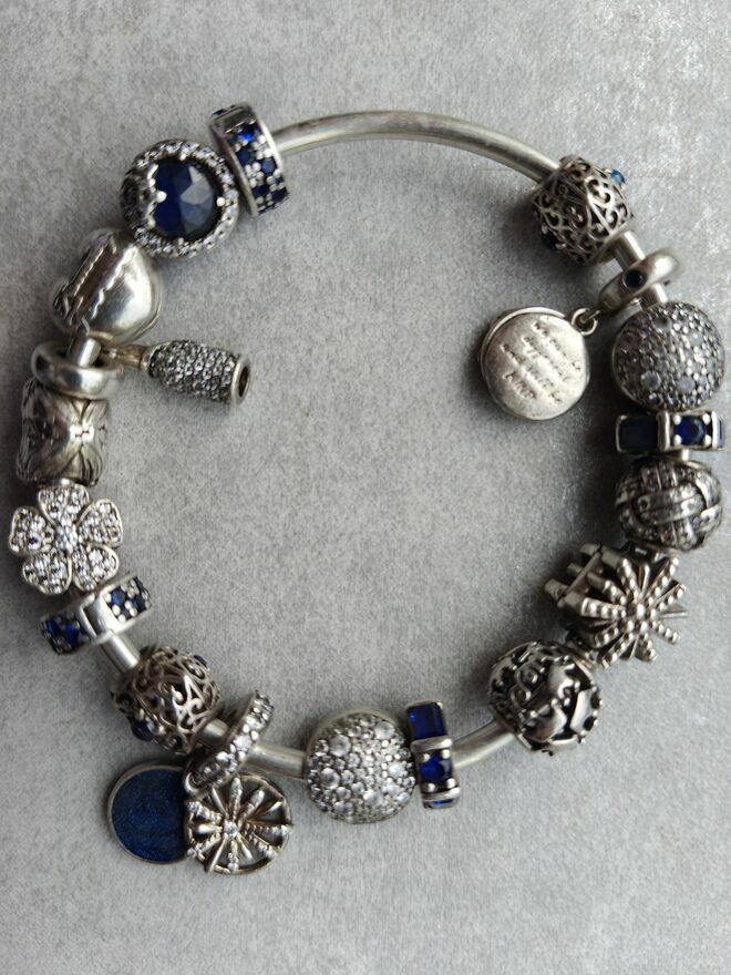 Dwie pełne bransoletki nabierają na wartości w bardzo dobrym stanie.1500 za sztukę wartość o wiele większa.cena sugerowana według oceny wartości minimalnej według salonu Pandora