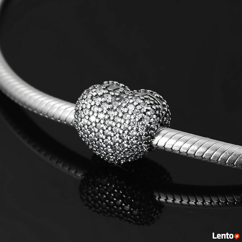 Witam,oferuję zawieszkę do bransoletek Pandora w kształcie klipsa serca pave.