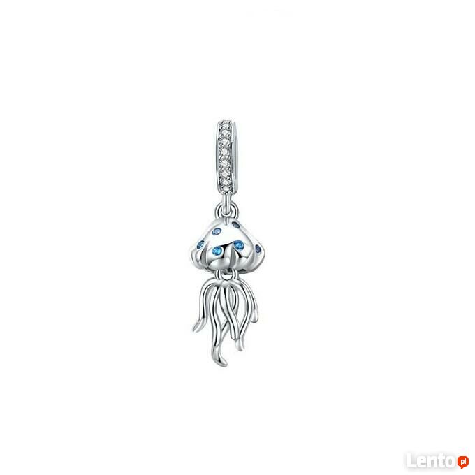 Zawieszka składa sie z 2 ruchomych elementów: muszelki oraz rozgwiazdy wysadzanej drobniutkimi cyrkoniami w kolorze błękitnym. Sam koralik wysadzany jest srebrnymi cyrkoniami