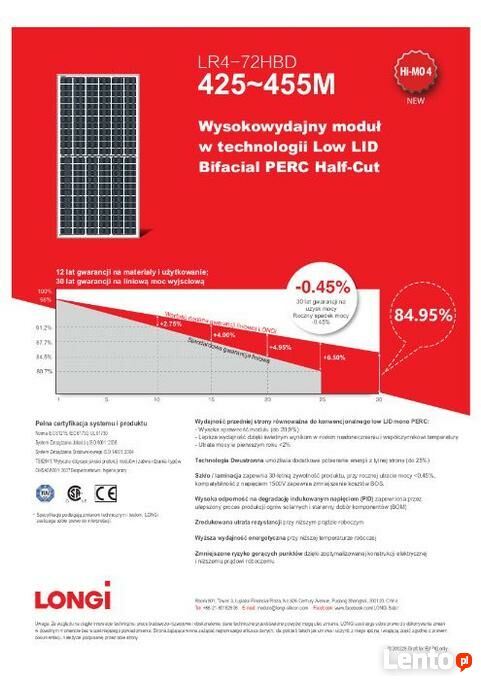 Panele Fotowoltaiczne HURT LONGi HBD 440Wp Dwustronne