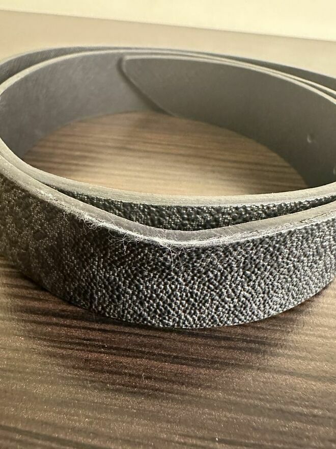 Pasek ma jedną małą widoczną na zdjęciu wadę oraz ma jedną dziurkę zrobioną dodatkowo.