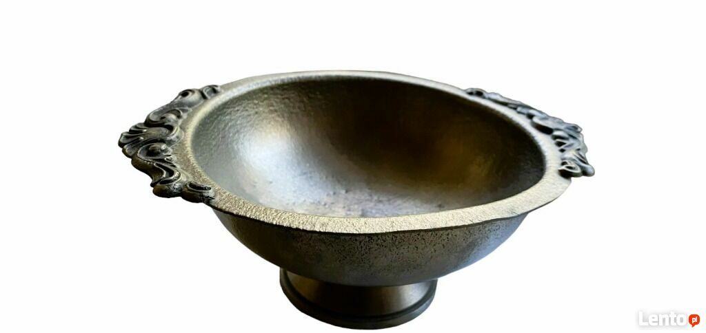 naczynie zostało odlane ręcznie stąd tez jego kształt nie jest idealnie geometryczny, widoczne są ślady lekkich zarysowań wew. misy