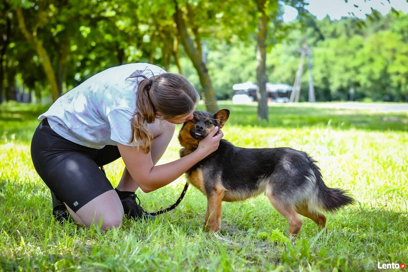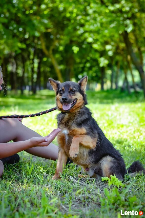 Gdy zabraliśmy go na spacer, korzystał z niego jak najdłużej. Zobaczył że smycz to nic złego. Przy pierwszym kontakcie z nowym człowiekiem zawsze jest niepewny, ale po krótkim czasie otwiera się i wskakuje łapkami na kolana prosząc o pieszczoty.