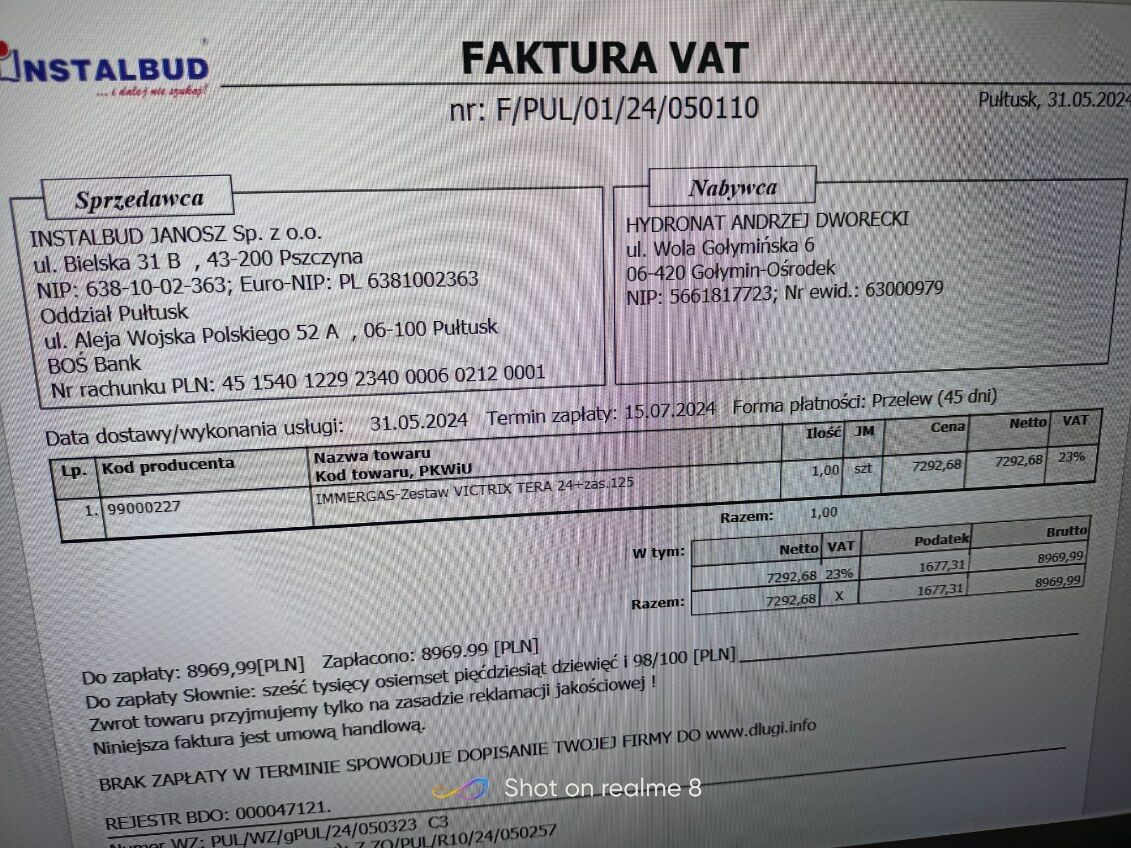 Witam sprzedam piec gazowy z zasobnikiem 125 jeszcze w kartonach nie uzywane. Piec to immergas victrix tera 24 plus i zasobnik 125. mielem instalowac u siebie ale predko tego nie zrobie poniewasz nie mam czasu a szkoda zeby nowy piec sie marnowal. kupilem go w 2024 za 9k dla potwierdzenia mam faktureSprawdź zainteresowanie tym ogłoszeniem