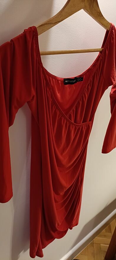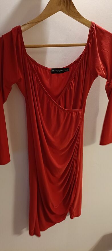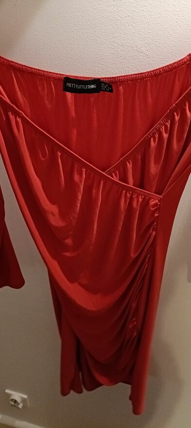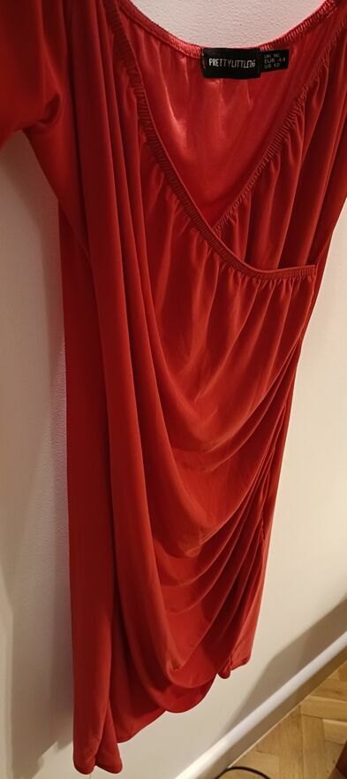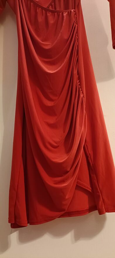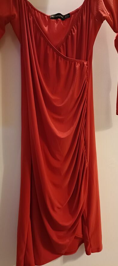 WitamSprzedam elegancką, czerwoną sukienkę marki PrettyLittleThing, rozmiar UK 16 (EUR 44, US 12). Sukienka jest wykonana w 95% z poliestru i 5% z elastanu, dzięki czemu ładnie dopasowuje się do sylwetki. Ma kopertowy krój z marszczeniami po bokach, idealna na wyjątkowe okazje. Założona była tylko dwa razy, w stanie idealnym