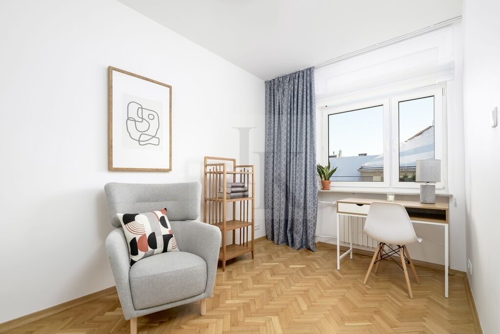 ciche podwórko. W gabinecie znajduje się szafa wnękowa, biurko z