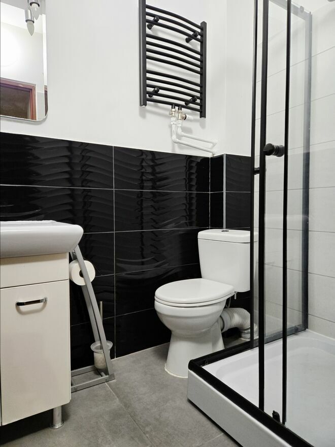 -prywatnej łazienki (toaleta, prysznic, umywalka) przylegającej do salonu