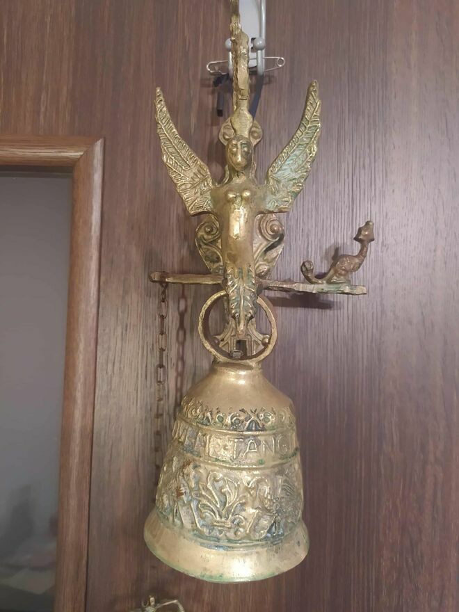 Piękny stary unikalny mosiężny dzwon ze Szwecji