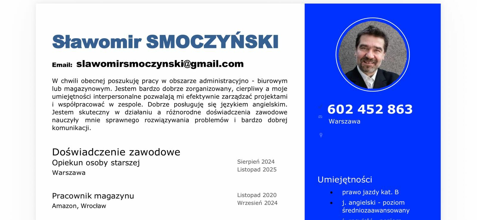 PILNIE SZUKAM PRACY W WARSZAWIE.W załączeniu 2 CV.