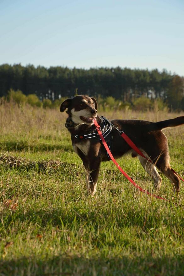 Mimo że ten zakpił z niego nie raz. Pimpek trafił do nas ze swoją mamą z malutkiego ciasnego kojca, z którego nie byli wypuszczani. Nie miał nigdy szansy na regularne spacery, na rozładowanie nadmiaru energii. Ponadto w czasie rezonansu okazało się że problemy Pimpka wynikają z poważnego uderzenia w okolicach głowy, którego doznał w młodości/ dzieciństwie, być może z rąk ludzi którym ufał. Stąd specyficzne spojrzenie Pimpka, problemy z kontrolą wypróżnień, problemy z wyciszeniem się.