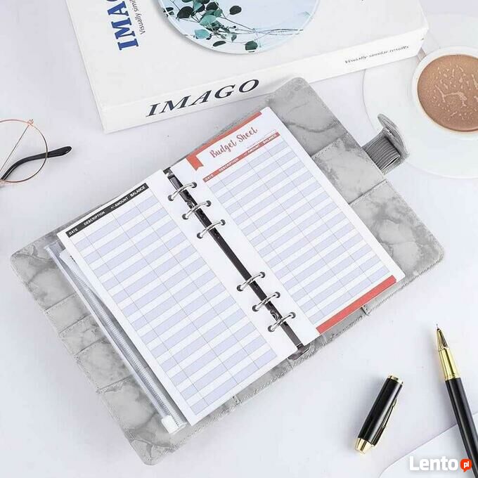 3. Segregator A6, koperty i arkusze budżetowe oraz kolorowe etykiety. Ten organizer na pieniądze pomoże Ci skutecznie zarządzać planem finansowym i utrzymać wszystko w porządku.