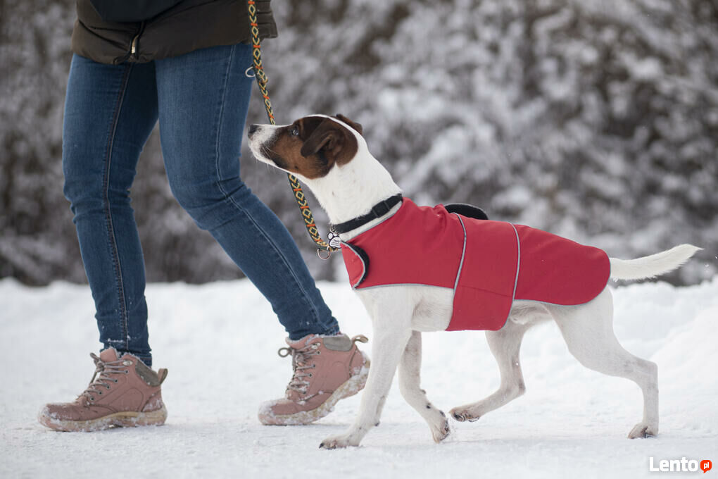 Zewnętrzna warstwa ubrania dla psa, uszyta jest z polskiego materiału Oxford ( poliester ), która odporna jest na zachlapania. Wewnętrzna warstwa ubranka dla pieska to ciepła tkanina, hipoalergiczny polar.