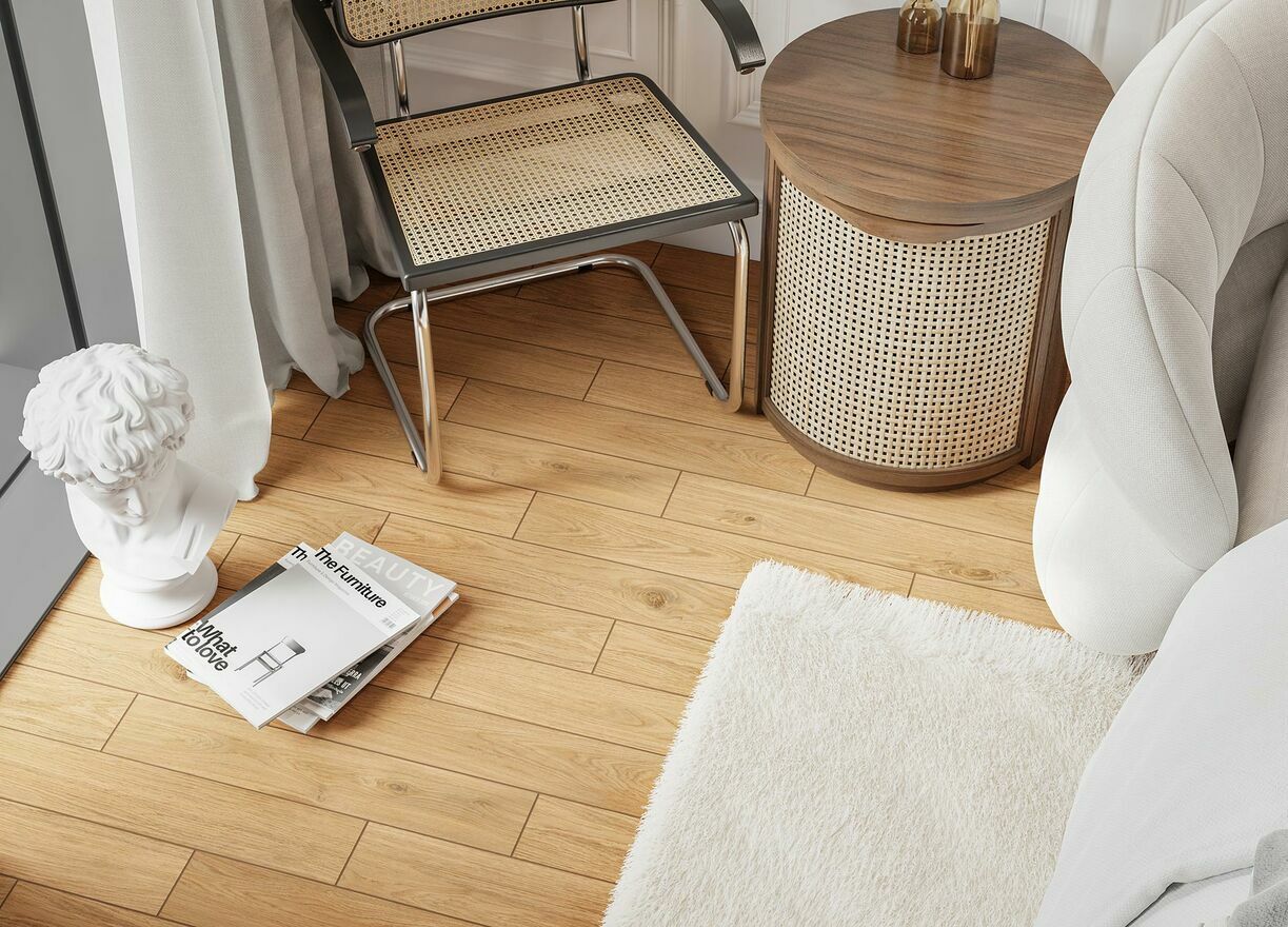 Płytki drewnopodobne mogą być wykorzystane zarówno na podłodze, jak i na ścianach, tworząc spójną przestrzeń o eleganckim wyglądzie.