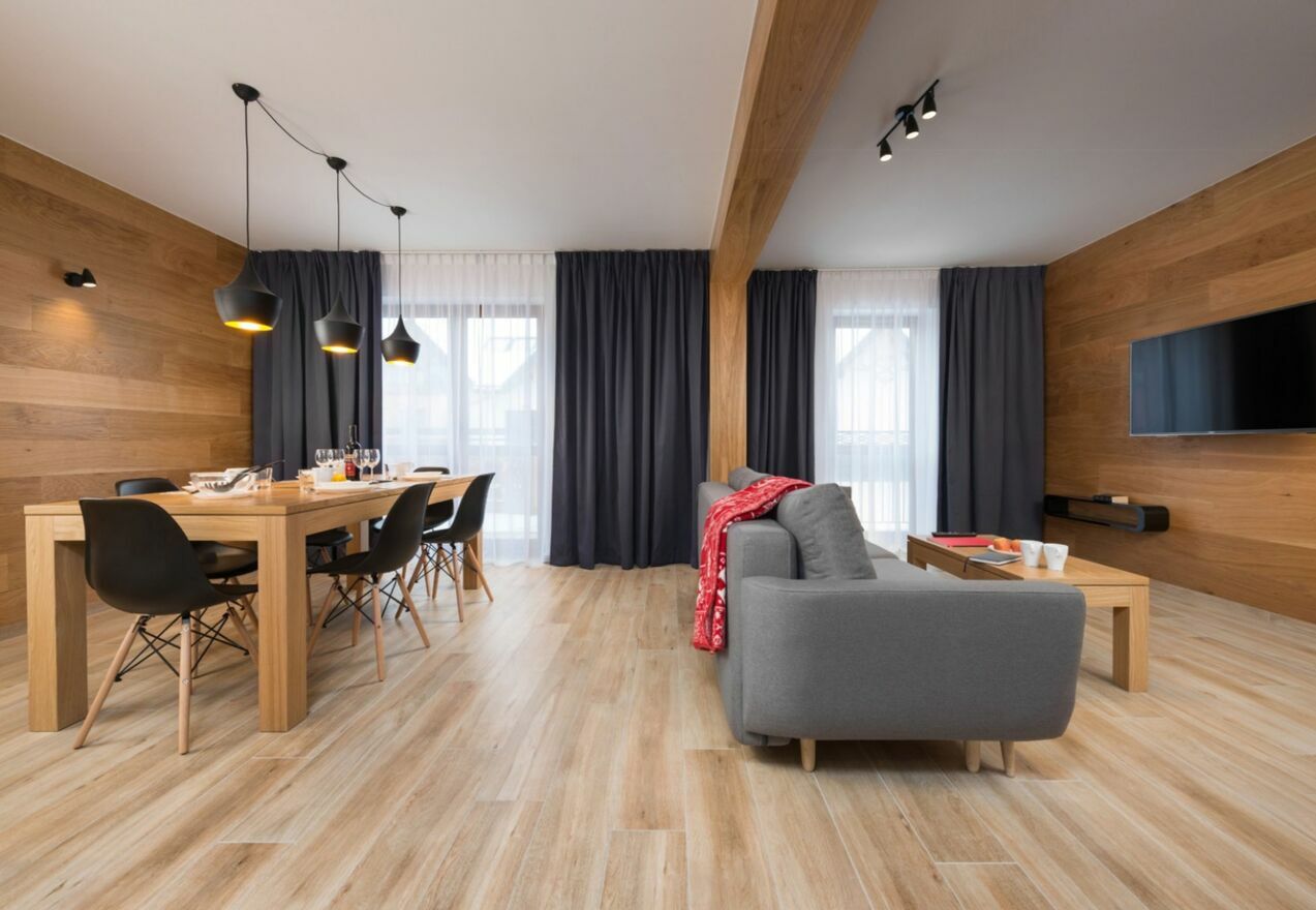 Płytki drewnopodobne mogą być wykorzystane zarówno na podłodze, jak i na ścianach, tworząc spójną przestrzeń o eleganckim wyglądzie.