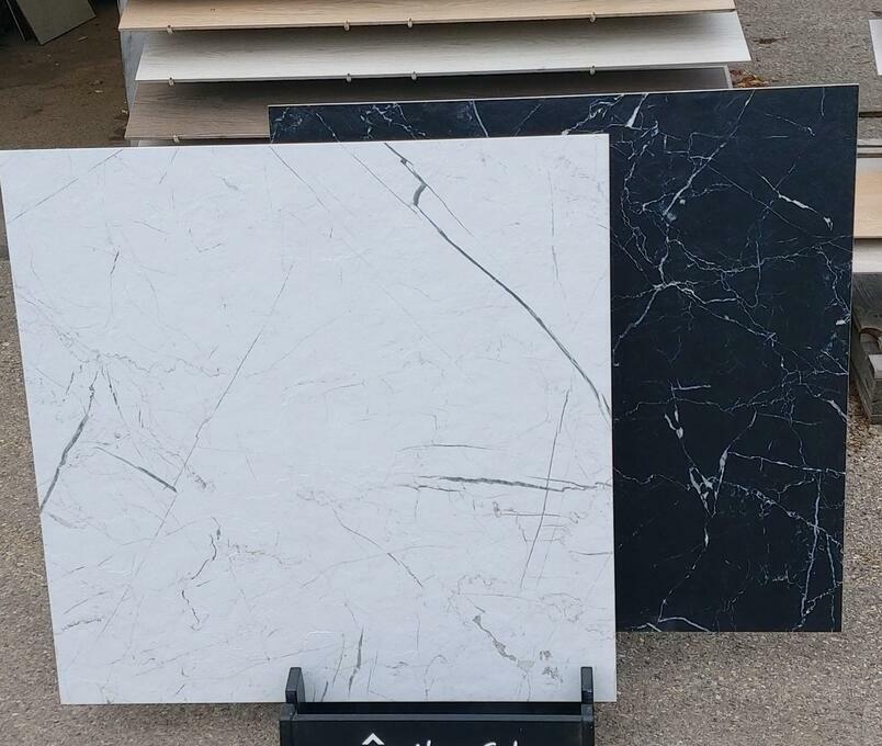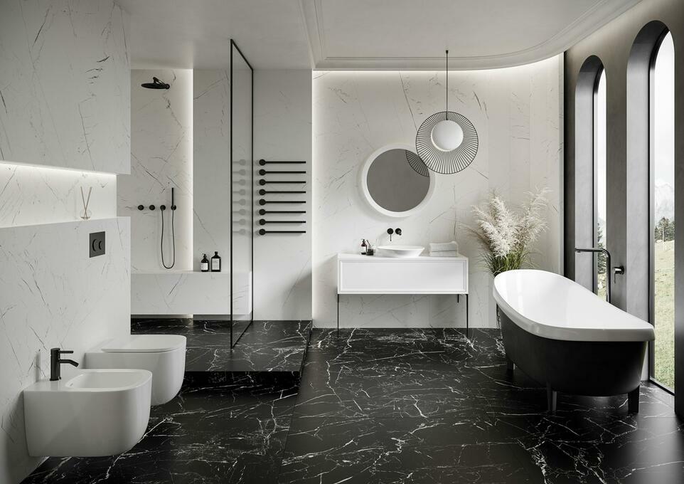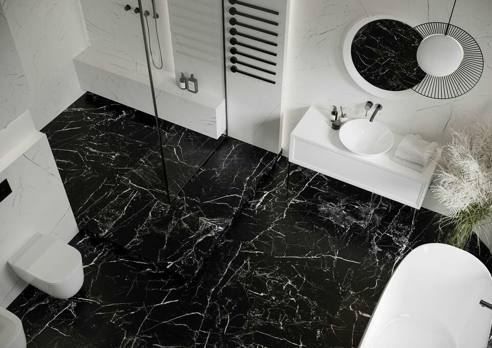 Płytki łazienkowe 80x80 biały i czarny marmur Marmo La Mania