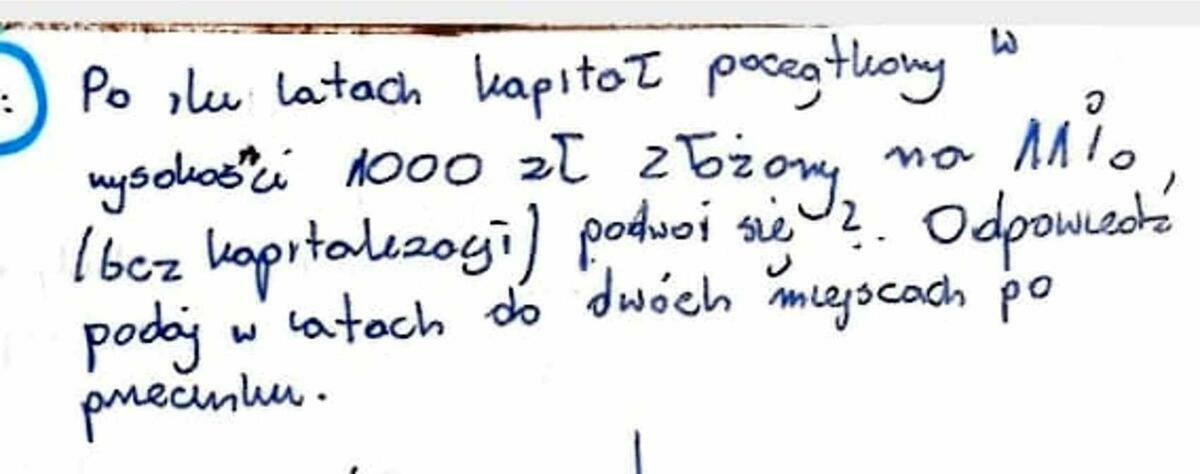 "Po ilu latach kapitał początkowy podwoi się?" - Zestaw 1 rozwiązań. poziom - Studia______________________________