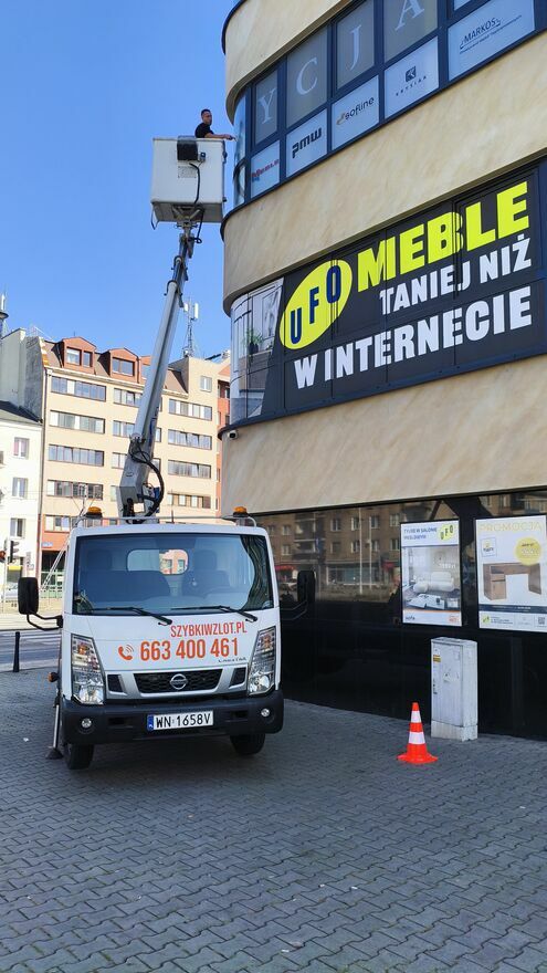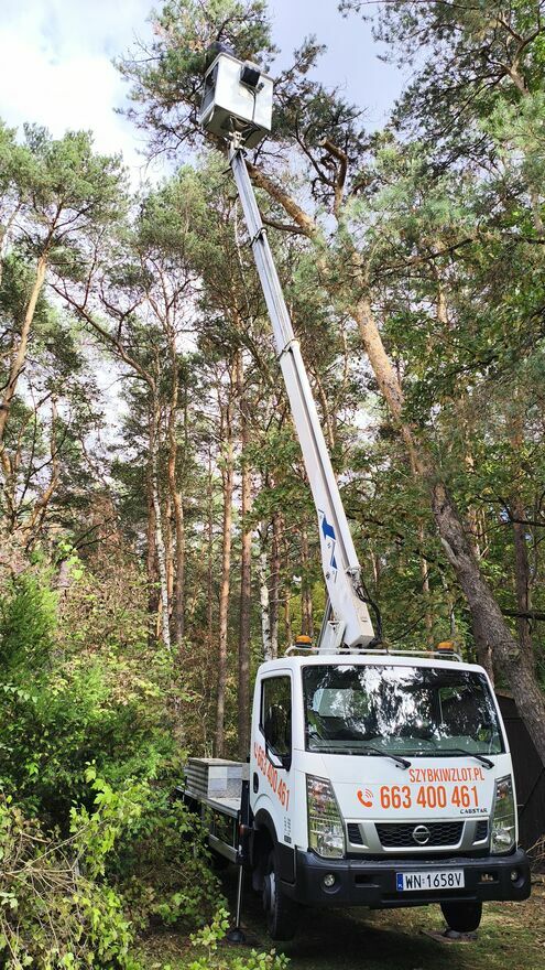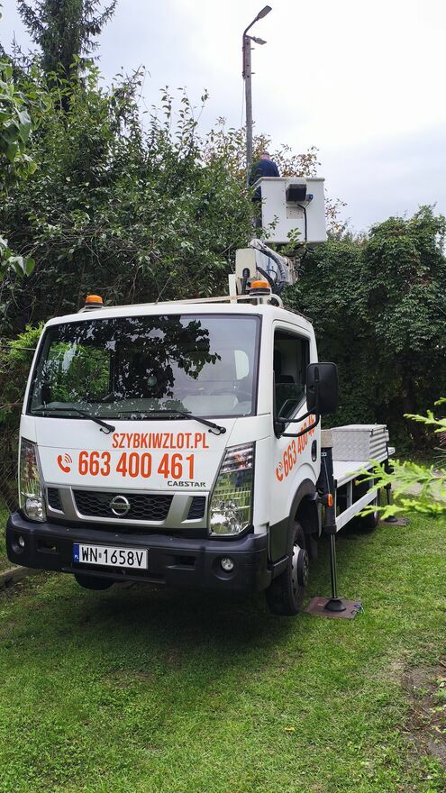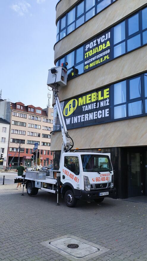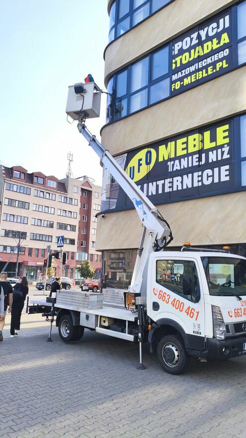 Podnośnik koszowy, zwyżka, reklamy, dekoracje, przycinka