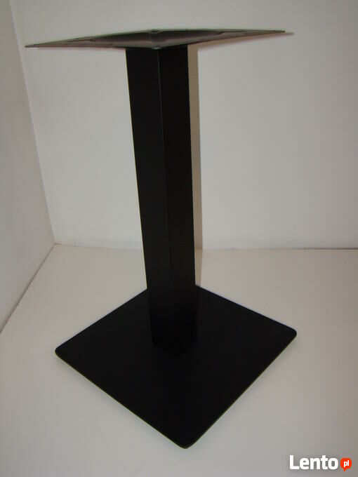 Oferuję nowe solidne kwadratowe czarne podstawy do stołu:talerz dolny 450 x 450 mm, kolumna 80 x 80 mm, mocowanie blatu 350 x 350 mm, waga około 15 kg, wysokość 720 mm.