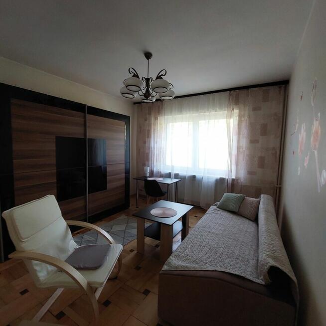 Większy pokój w mieszkaniu dwupokojowym. Mieszkanie po remoncie, w pełni wyposażone. Znajduje się w bloku z pełnym ...