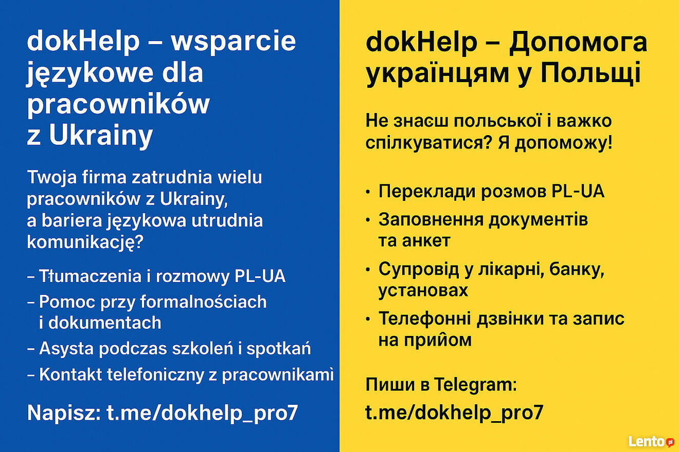 dokHelp – wsparcie językowe dla pracowników z UkrainyZatrudniasz osoby z Ukrainy i bariera językowa utrudnia komunikację? A może sam/a potrzebujesz pomocy, bo nie znasz dobrze polskiego?