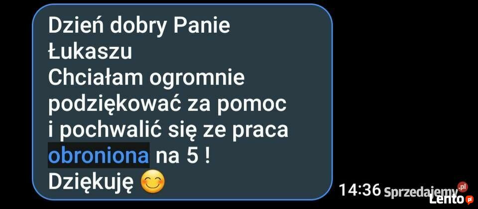 Zawodowo piszę od 13 lat. Każdy tekst jest w 100% oryginalny i przechodzi szczegółową weryfikację w kontemście systemów sprawdzających. Możliwość realizacji usługi priorytetowej do 48 godzin. Poprawki w cenie.