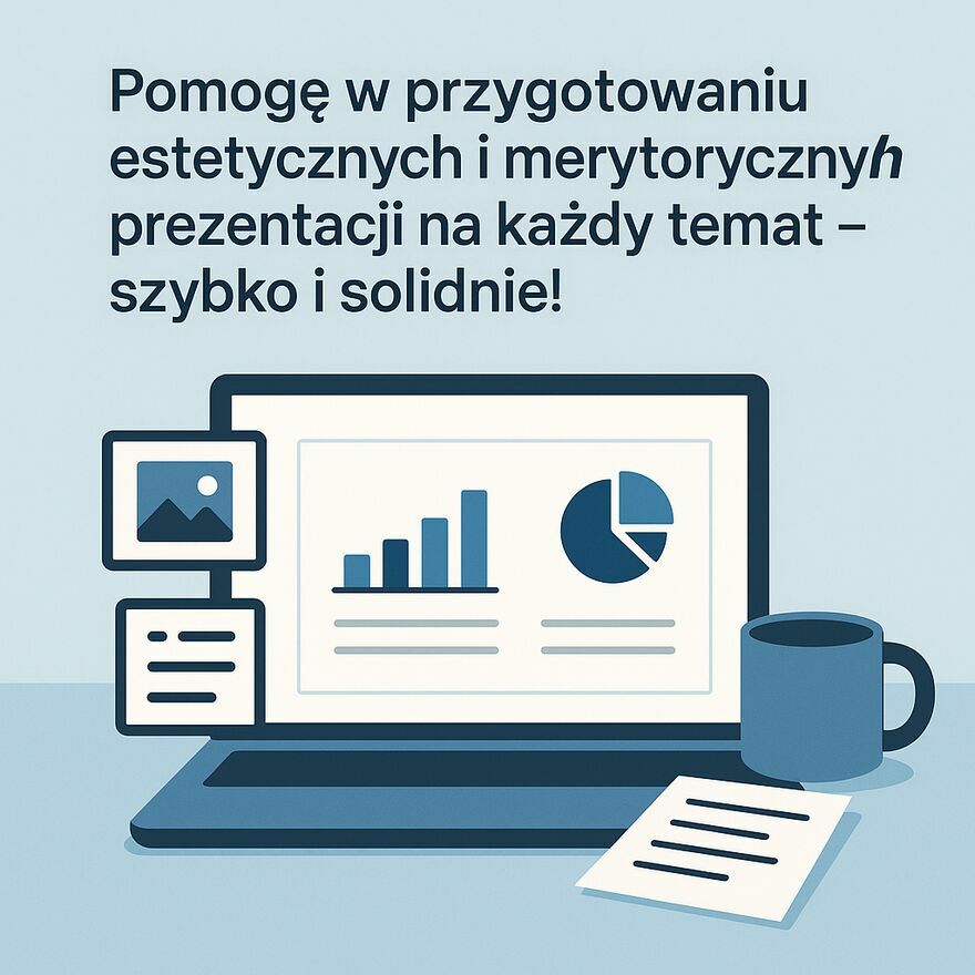 Masz do zrobienia prezentację, ale brakuje Ci czasu lub pomysłu?Zgłoś się do mnie! Tworzę nowoczesne, czytelne i estetyczne prezentacje w PowerPoint, Google Slides lub Canva