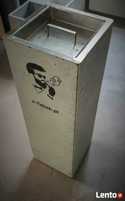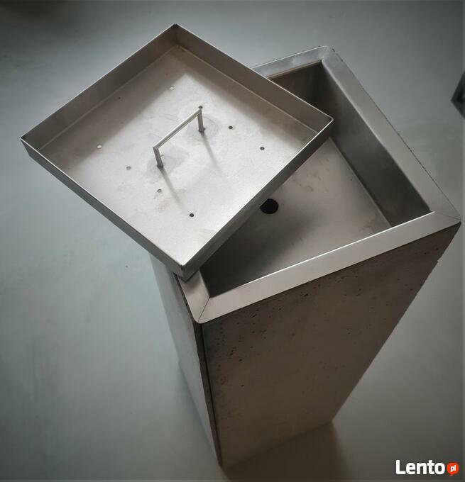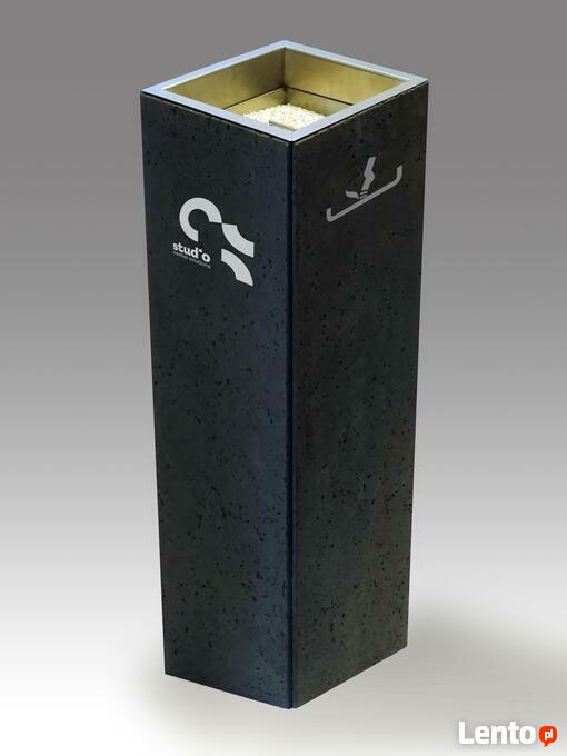 Zapraszam do zakupu popielnicy z betonu architektonicznego o wymiarach 26 x 26 x 80 wysokość . Wkład ze stali nierdzewnej wyciągany.Możliwość nadruku logo firmy i nadruku papierosa.