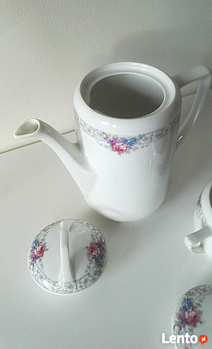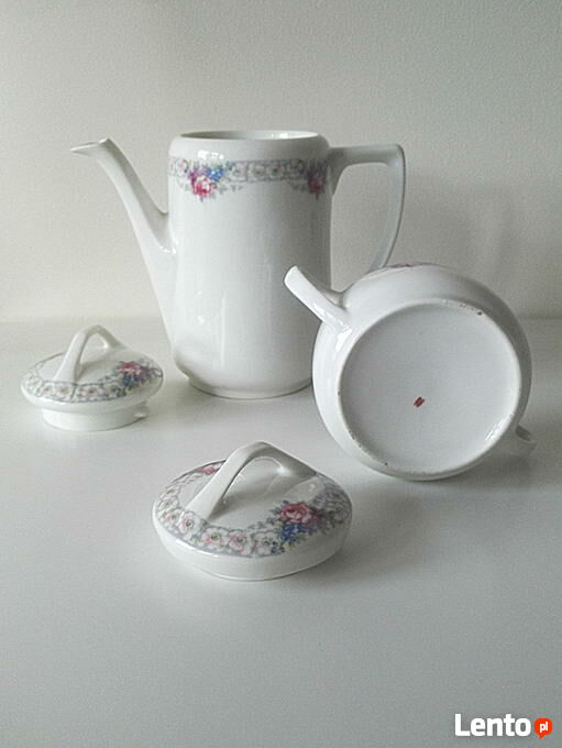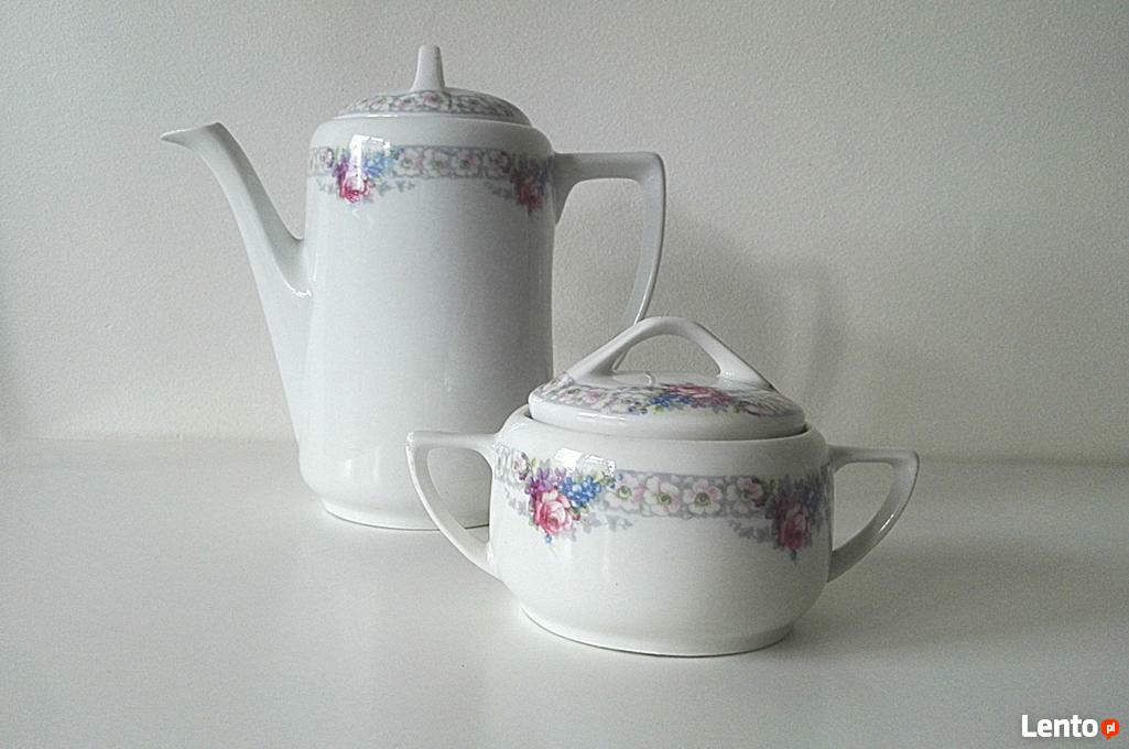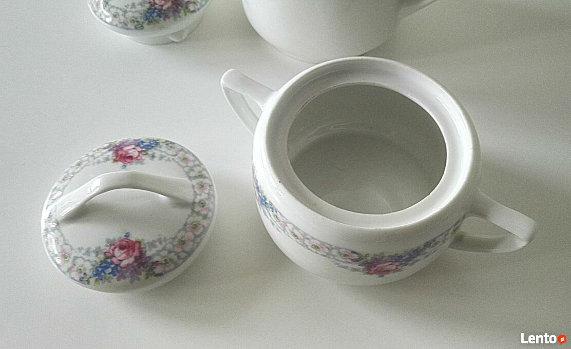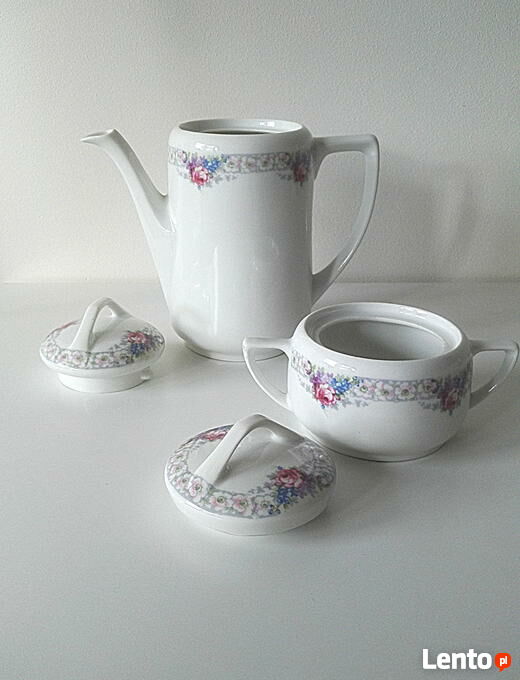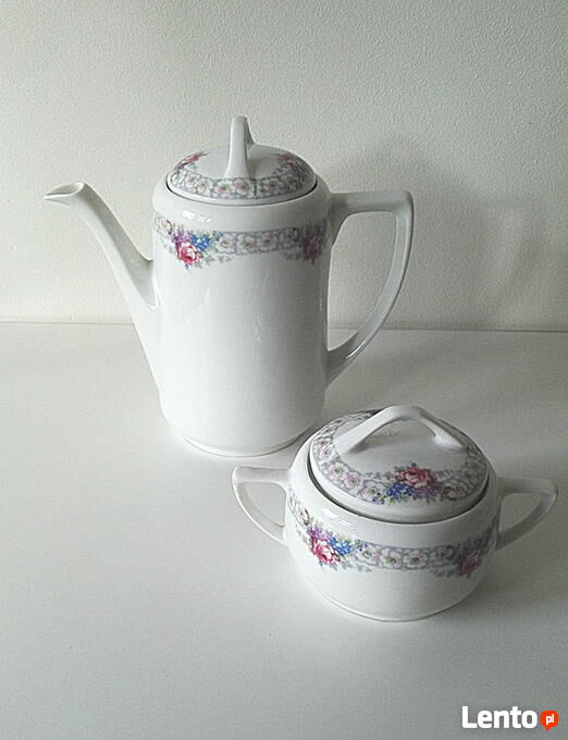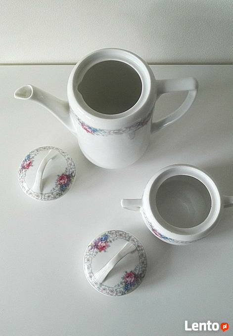 Porcelanowy imbryk w komplecie z cukiernicąw doskonałym stanie, bez uszkodzeń,