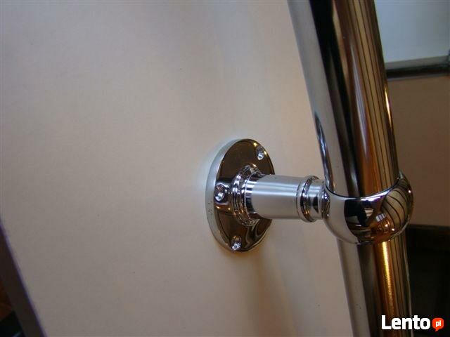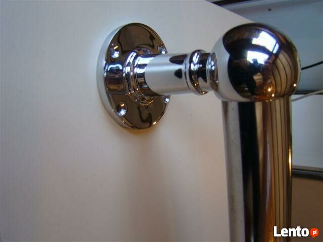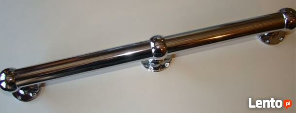 Mam do sprzedania nowe poręcze o 300 cm. Wykonane są z rur stalowych pokrytych chromem galwanicznym. Średnica rury wynosi 3,2 cm. Grubość ścianki 1,1 mm. Zestaw składa się z rury , dwóch uchwytów końcowych i jednego przelotowego lub dwóch rur o długości 150 cm każda, przedłużki i trzech uchwytów: dwóch końcowych i jednego przelotowego. Łączenie ukrywa się w uchwycie przelotowym. Całość jest przeznaczona do samodzielnego montażu. Odległość poręczy od ściany wynosi 5 cm. ( istnieje możliwość zastosowanie krótszych uchwytów 3 cm od ściany lub dłuższych 10 cm) UWAGA: PREZENTOWANE PORĘCZE NADAJĄ SIĘ TYLKO DO WNĘTRZ. Jeżeli ktoś chce zamontować poręcz na schodach znajdujących się na zewnątrz to należy ją pomalować zwykłą farbą do metalu.Na życzenie dostępne inne długości. Wykonujemy także całe balustrady.