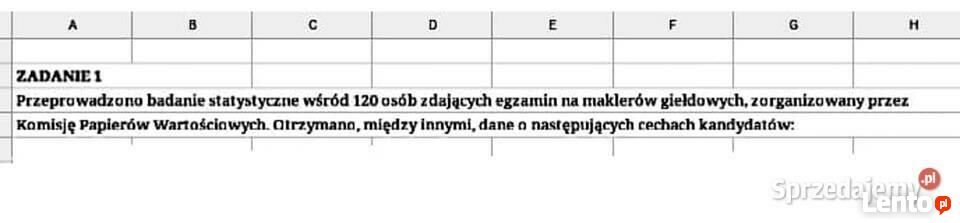 "Przeprowadzono badanie statystyczne wśród 120 osób zdających egzamin na maklerów giełdowych, zorganizowany przez Komisję Papierów Wartościowych. Otrzymano, między innymi, dane o następujących cechach kandydatów:....