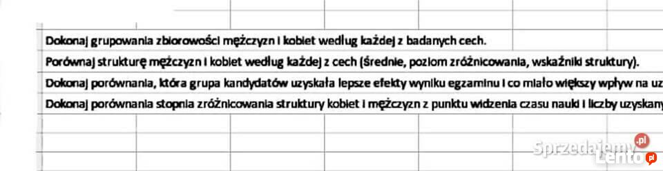 Porównanie grup statystycznych Rozwiązanie zadania Excel.