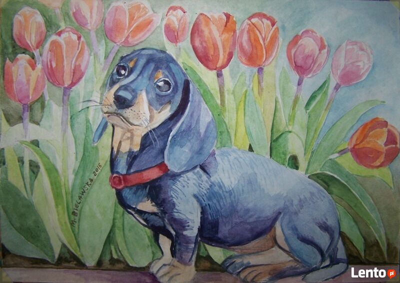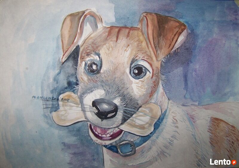 Oferuje wykonanie na zlecenie portretu pupila -psa, kota lub inne wg. zdjęcia w następujących technikach :- akwarele na papierze akwarelowym,
